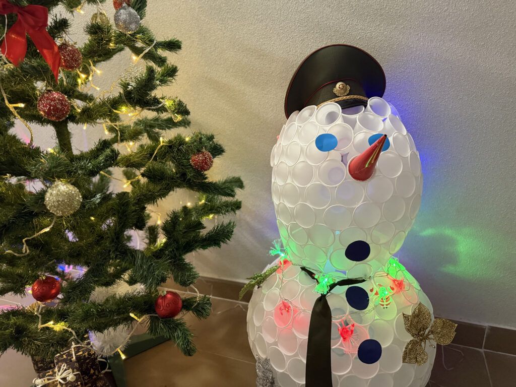 Приветствует гостей и веселый снеговик в фуражке. Ничего удивительно: большинство жителей этого дома – военнослужащие.