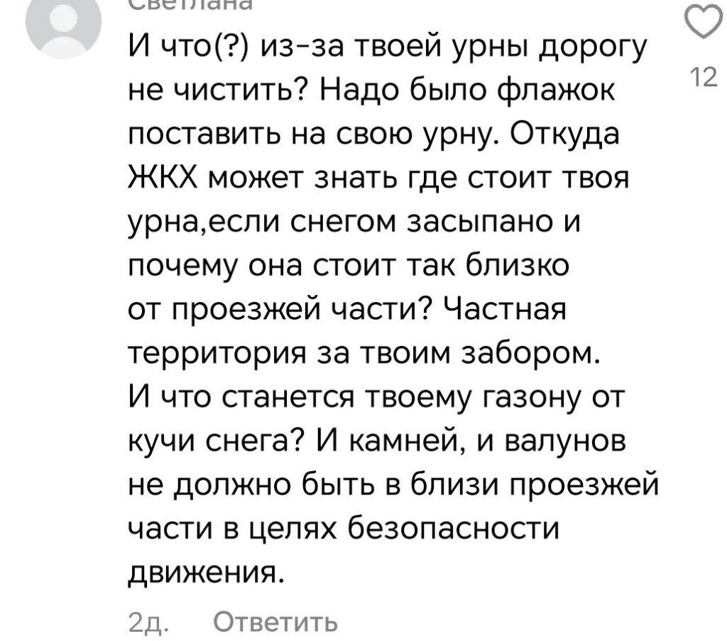 Видео собрало более 570 комментариев. Большинство пользователей раскритиковали тиктокершу, заявив, что ее претензии абсурдны в условиях снежного апокалипсиса. Некоторые похвалили за инициативность в благоустройстве.