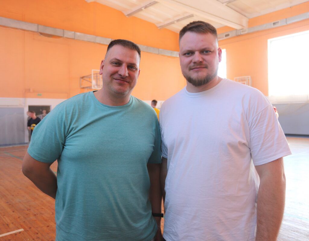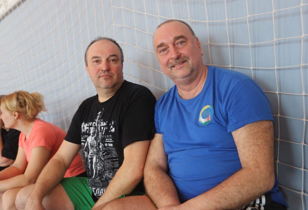 Рядом с молодежью на площадке — те, кто знает о корпоративном спорте все. Сергей Гриб и Николай Некрасов (команды Краснознаменского комбикормового завода и энергетиков) с улыбкой называют себя «олдами» соревнований.