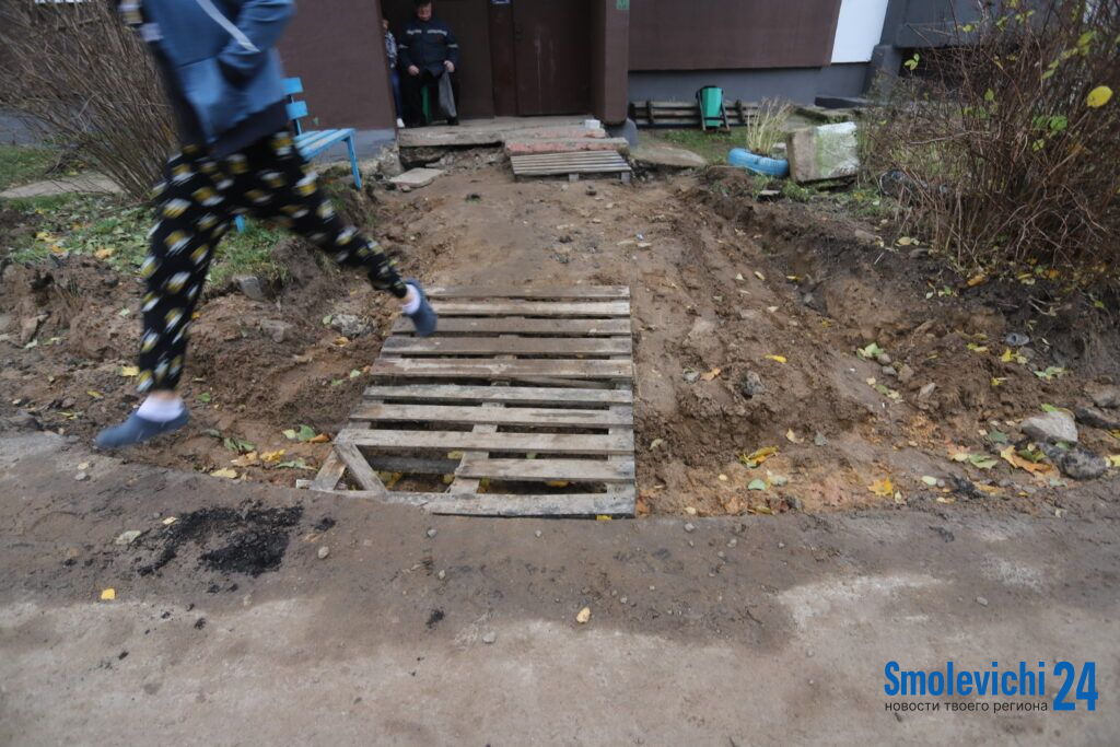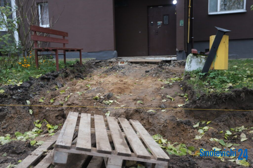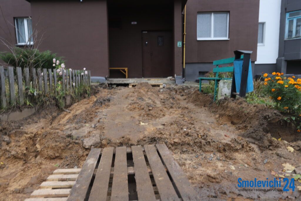 СМОЛЕВИЧИ. Очередная жалоба от недовольных смолевичан появилась в TikTok. Жительница дома №10 по улице Голубева в Юго-Западном микрорайоне сняла ролик под названием «Не пройти до подъезда!!!», в котором говорит: «Ужас! Разрыли дороги так, что людям не пройти. Как пройти в подъезд — непонятно!»