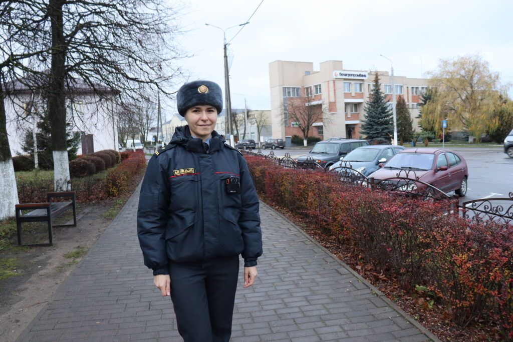 Наша героиня получила юридическое образование. 10 лет служила в Госавтоинспекции Смолевичского РОВД, а затем легко сменила кабинет на работу «на земле». Сейчас она участковый инспектор. В ее обслуживании – административный участок Жодинского сельсовета, а это 35 населенных пунктов. Поэтому за письменным столом девушка не задерживается. Каждый день она объезжает свой участок и времени на ногах проводит гораздо больше, нежели за бумагами.