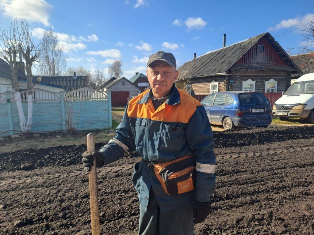 Рабочий Алексей Ахремович убирает крупную фракцию: