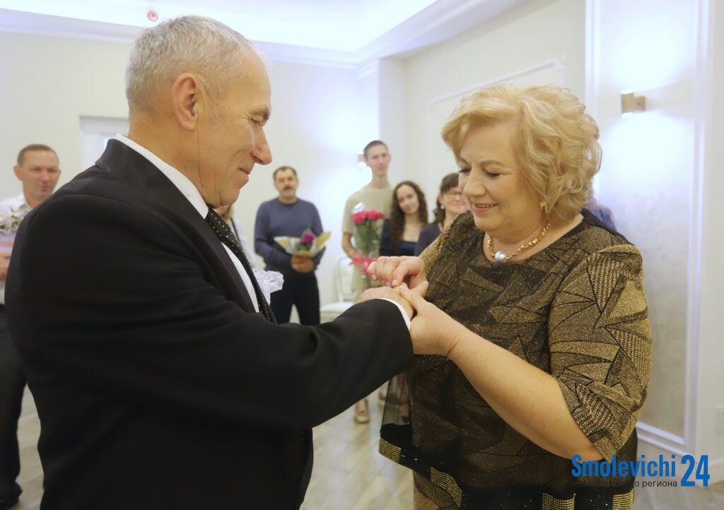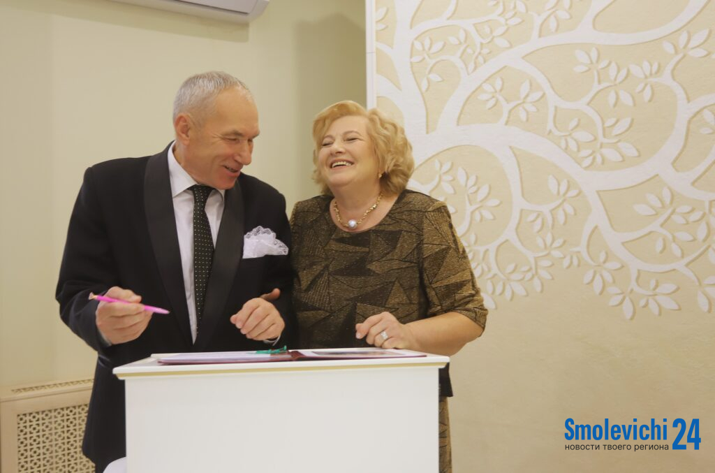 СМОЛЕВИЧИ. 4 октября в отделе ЗАГС снова звучал вальс Мендельсона. Казалось бы, ничего удивительного. Но в этот раз в качестве молодоженов золотые юбиляры семейной жизни – Дмитрий Вячеславович и Светлана Константиновна КАЛЕНИКИ.