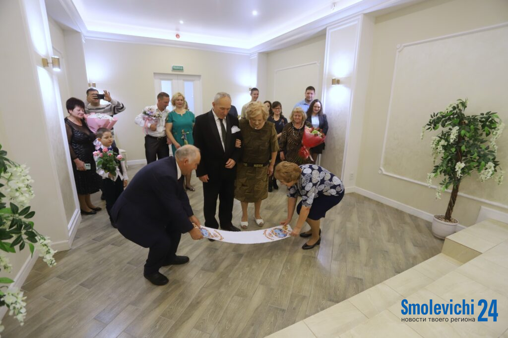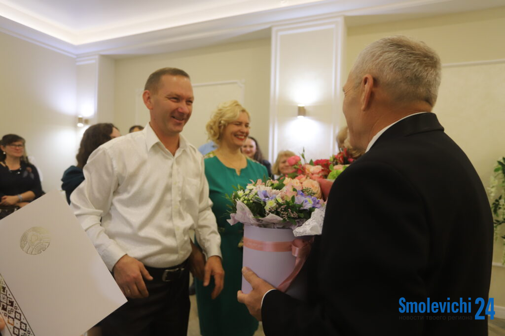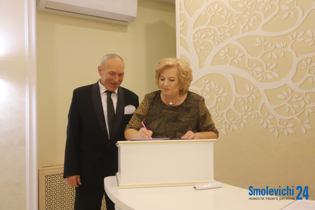 — Всегда особенно радостно регистрировать такие юбилеи, — делится начальник отдела ЗАГС Смолевичского райисполкома Наталья Брюханова. — В них особая искренность, любовь, верность и преданность. Очень приятно, что наши семьи разделяют этот трогательный момент вместе с нами и снова погружаются в волшебную атмосферу.