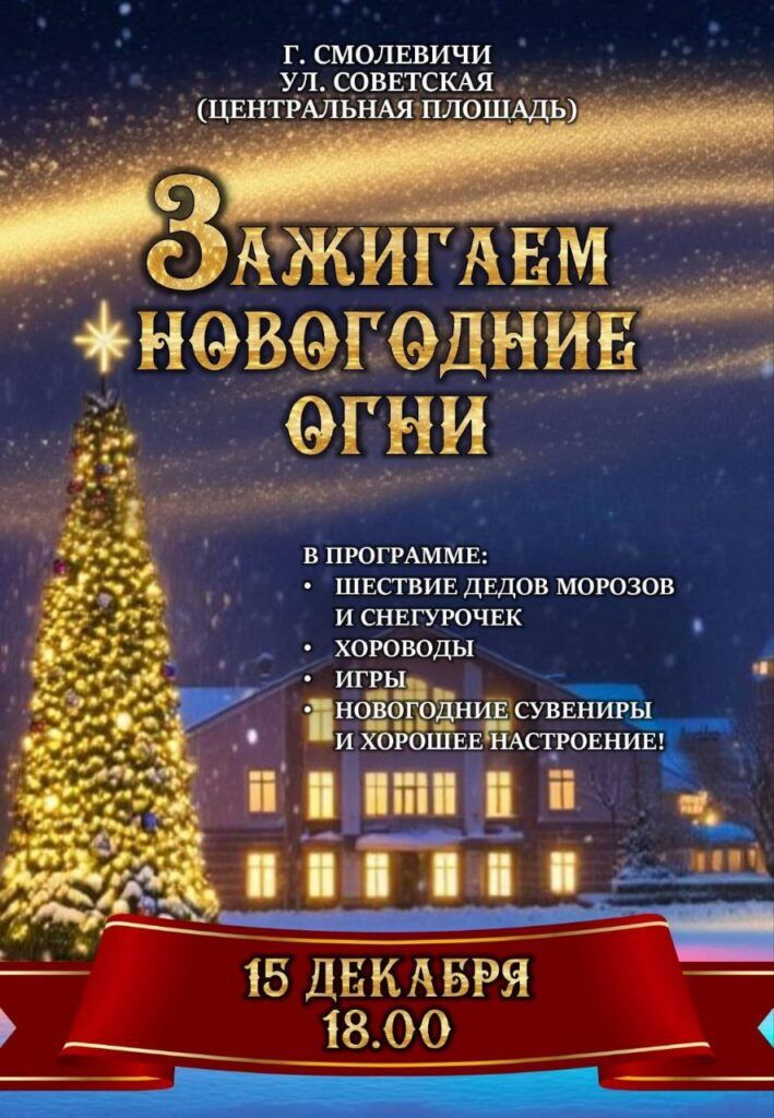 А в новогоднюю ночь 1 января смолевичан и гостей города приглашают в центр, на новогоднюю елку, где с 1 до 4 утра запланирована праздничная программа.