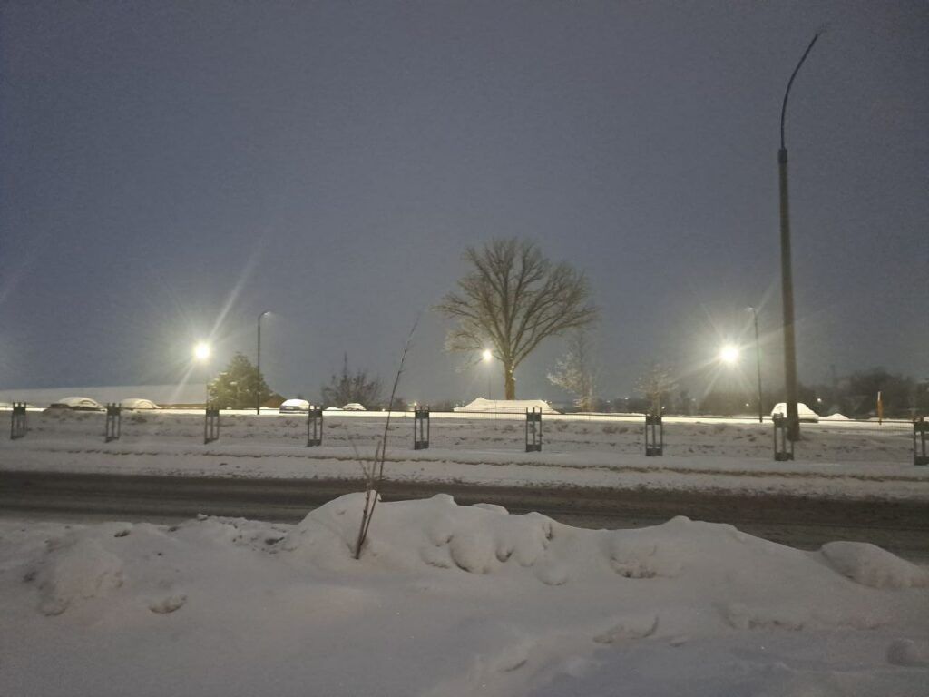 В центре города тоже чуть раньше отключили фонари. Однако улицы не погрузились в темноту — свет фар автомобилей, лампы над подъездами и отражение от снега создавали достаточно приемлемое освещение.