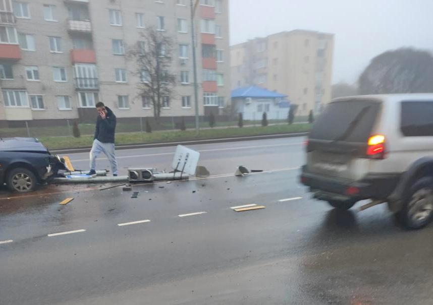 По фото и видео видно, что водитель врезался в светофор, полностью его снес. Кажется, на этом участке дороги электронные регулировщики никак не приживаются.