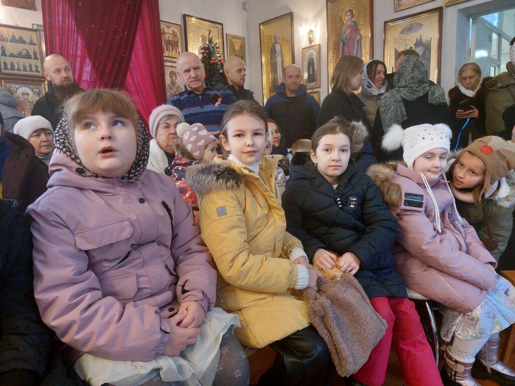 После Божественной литургии состоялся мастер-класс для детей по изготовлению Вифлеемской звезды и чаепитие с домашней выпечкой. А театр-батлейка «Дом з марами» порадовал детей и взрослых рождественскими историями.