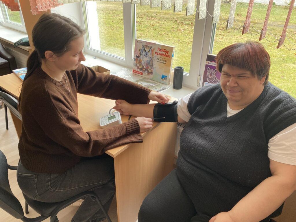Для пожилых граждан и людей с инвалидностью, проживающих в отделении круглосуточного пребывания, этот день начался с измерения давления. Эта консультация помогла участникам проверить самочувствие и получить рекомендации по поддержанию бодрости духа и физической формы.