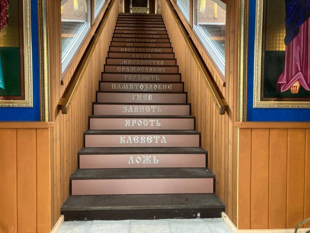 Здесь удивило многое: и лестница мытарств, и количество частиц мощей, и невероятной красоты люстра (паникадило — так правильно называют этот объект храмового пространства).