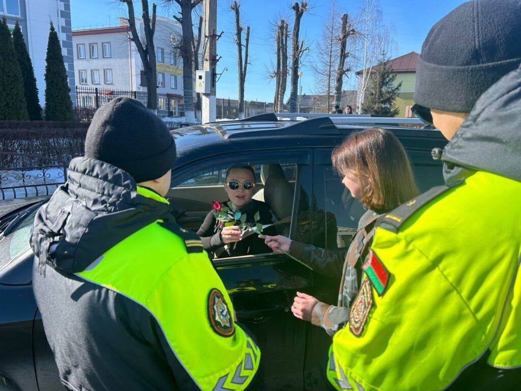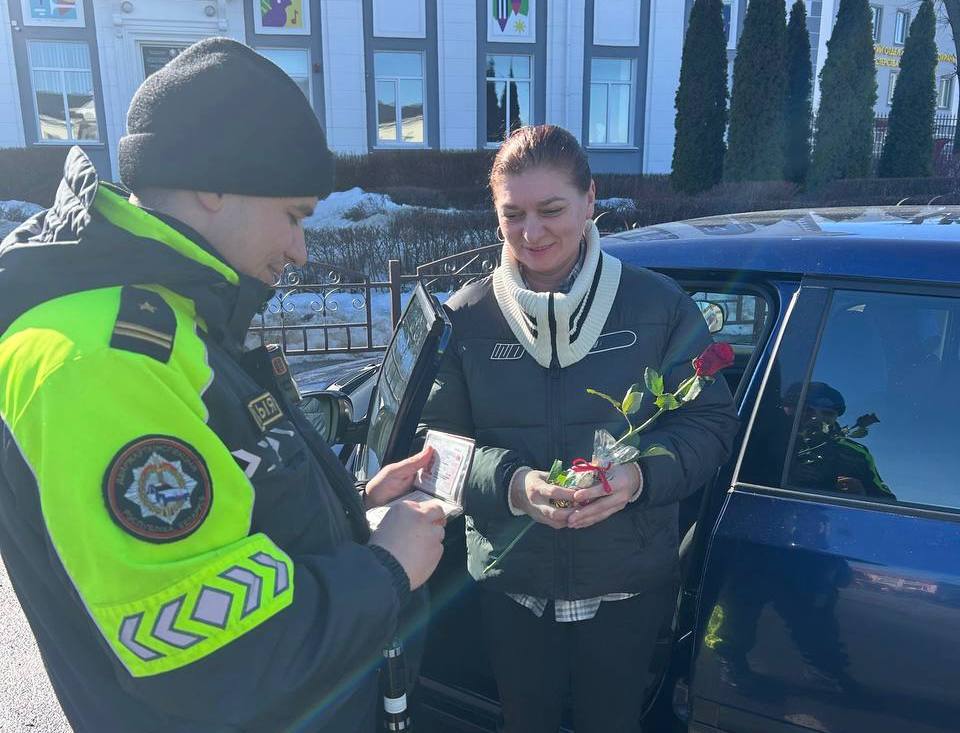Сегодня привычный ритм дорожного движения сменился праздничным настроением. Инспекторы ГАИ Смолевичского РОВД провели традиционную весеннюю акцию, поздравив автоледи с Днем женщин.