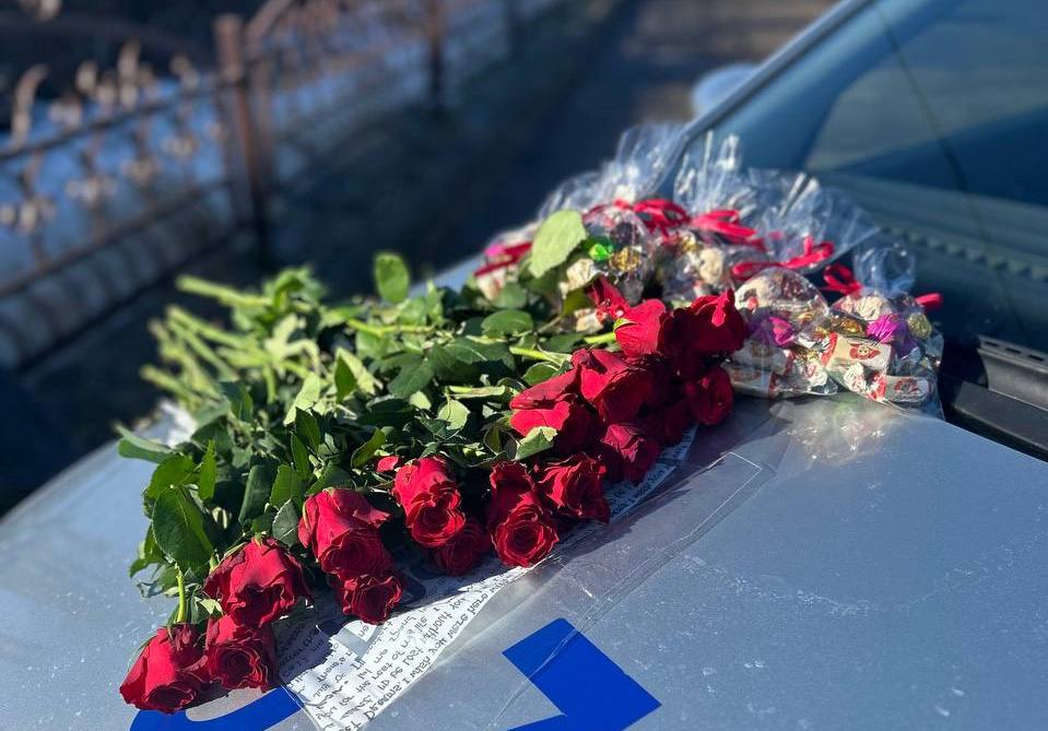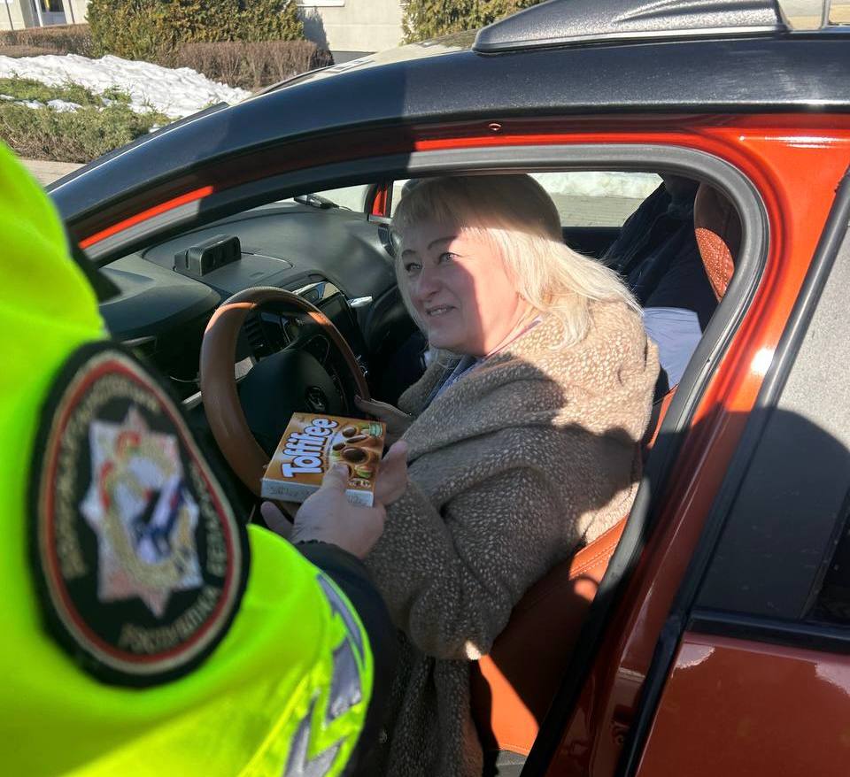 Вместо привычного требования предъявить документы, женщин за рулем ждали цветы, сладости и искренние пожелания.