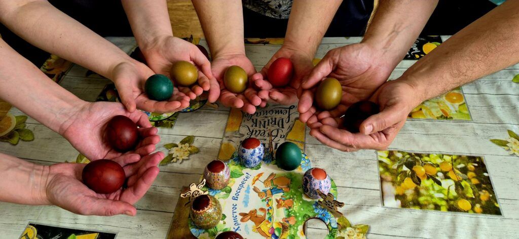 Не менее увлекательным занятием стало традиционное крашение яиц. Это занятие превратилось в настоящую творческую лабораторию. Используя разнообразные техники, каждый мог воплотить свои художественные идеи в жизнь. Кто-то из ребят использовал цветные растворы, кто-то экспериментировал с цветными мелками и наклейками.