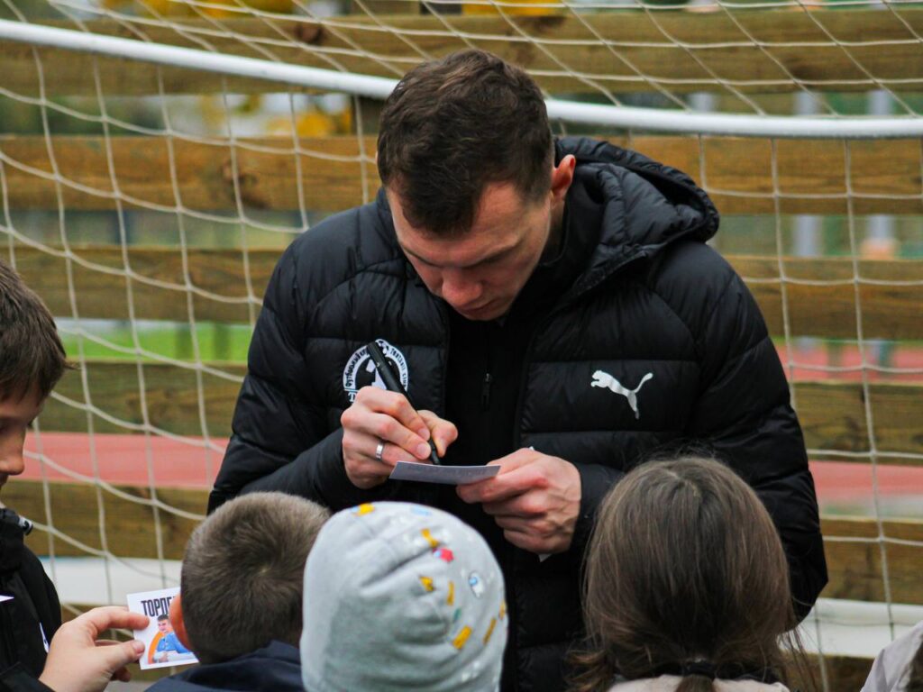 После обмена подарками гости и ребята вместе с учителем физкультуры Вадимом Гвозделко отправились на стадион. Игроки Евгений Абрамович, Тимофей Юрасов и Игорь Малащицкий провели футбольный мастер-класс для учащихся 3 и 4 классов.