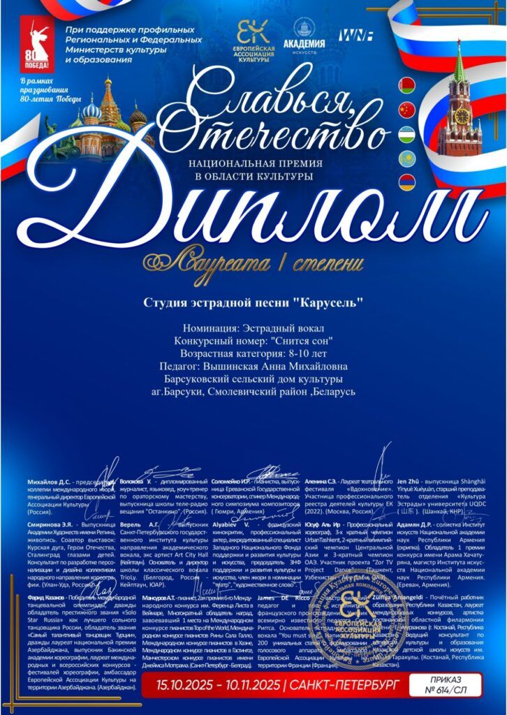 БАРСУКИ. Студия эстрадной песни сельского Дома культуры агрогородка победила в международном вокальном конкурсе «Славься, Отечество!».