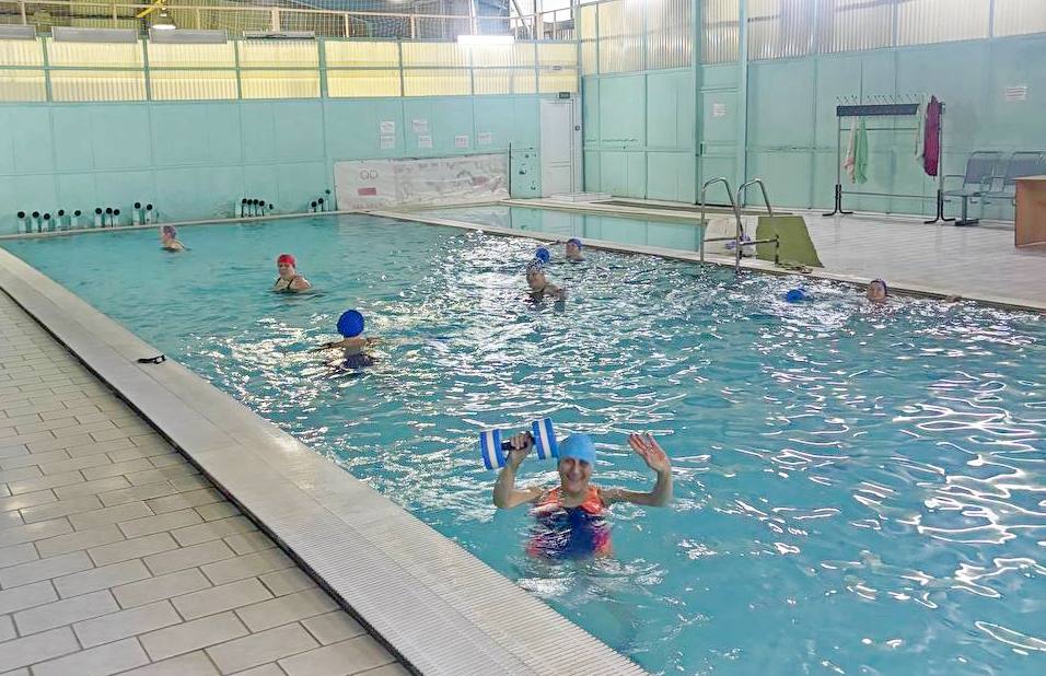 В физкультурно-оздоровительном комплексе поселка Октябрьский прошли необычные занятия по аквааэробике для старшего поколения в рамках новогодней акции «Ад усёй душы».