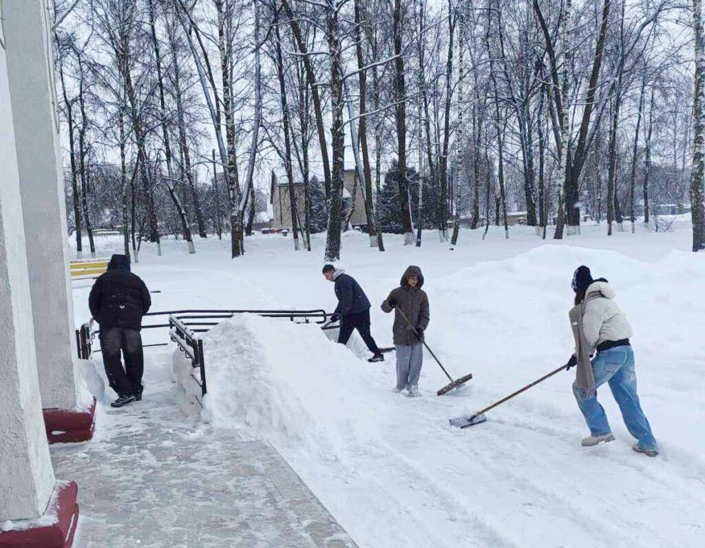 Объединившись в дружный десант, они помогают расчищать подходы к социально важным объектам и тротуары.