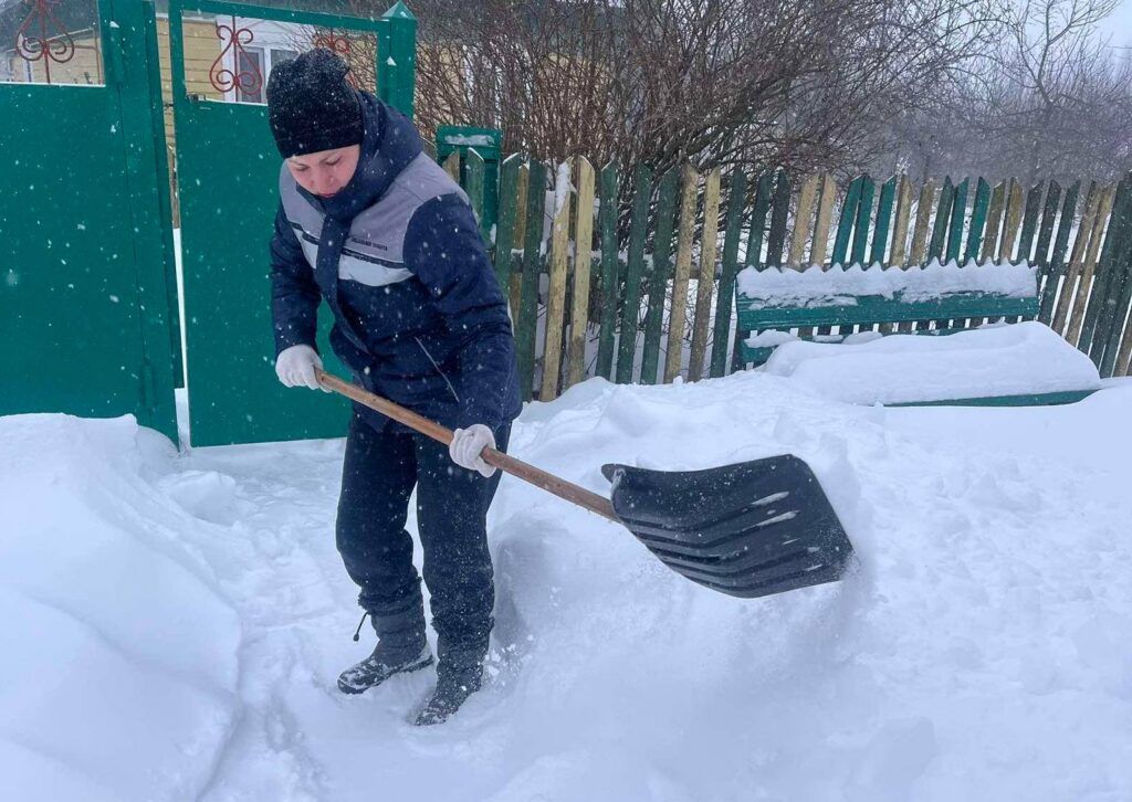 Соцработники расчищают дворы и дорожки, чтобы пенсионеры могли безопасно выйти из дома, доставляют продукты и необходимые вещи.