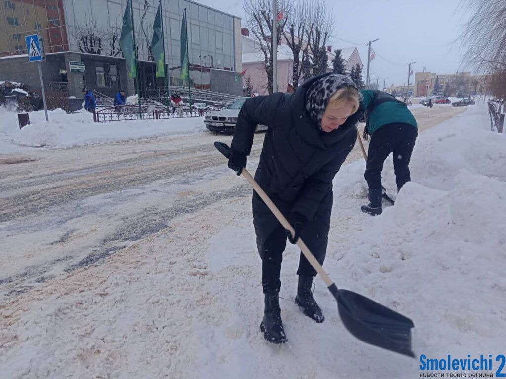 Смолевичский район присоединился к акции «Уберем снег вместе». Во главе с председателем Смолевиского райисполкома Николаем Парамоновым на улицы города вышли депутаты, члены партий, руководители подразделений, работники РОЧС, педагоги, спортсмены.