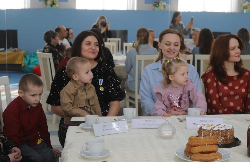 Однако главными героинями встречи стали многодетные мамы Елена Цуканова, Елена Яковлева, Вероника Пиванкова, Екатерина Папкович и Наталья Закревская.