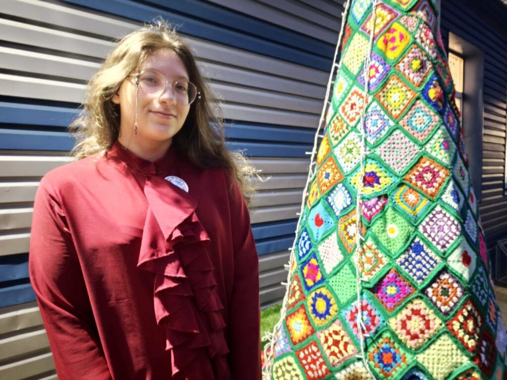 – Когда предложили идею создать вязаную елку, мне сразу понравилась идея. Это интересный способ, необычная задумка. Я не испугалась, что придется много вязать — для меня это нормально. Почти каждый день в свободное время делала по десять квадратиков. Всего получилось около пятидесяти. Каждый узор придумывала сама или подсматривала где-то. Это был мой личный вклад.