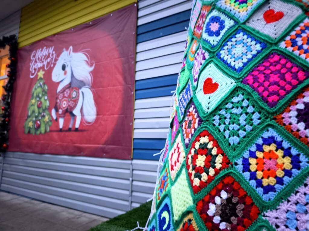 В средней школе № 2 города Смолевичи появилась необычная новогодняя елка — полностью связанная вручную.