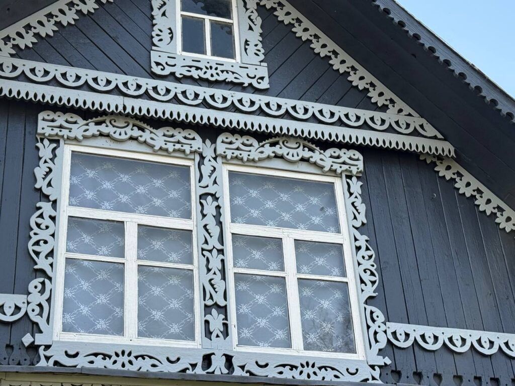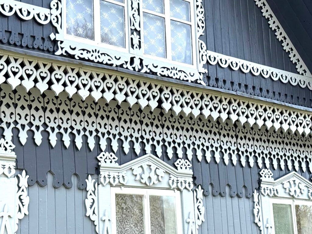 Приветливые хозяйки Янина Иосифовна Малышко и ее дочь Елена рассказывают, что такая красота создана руками их мужа и отца. В советское время Мечеслав Павлович занимался грузоперевозками и, часто посещая Россию, был очарован местным деревянным зодчеством.