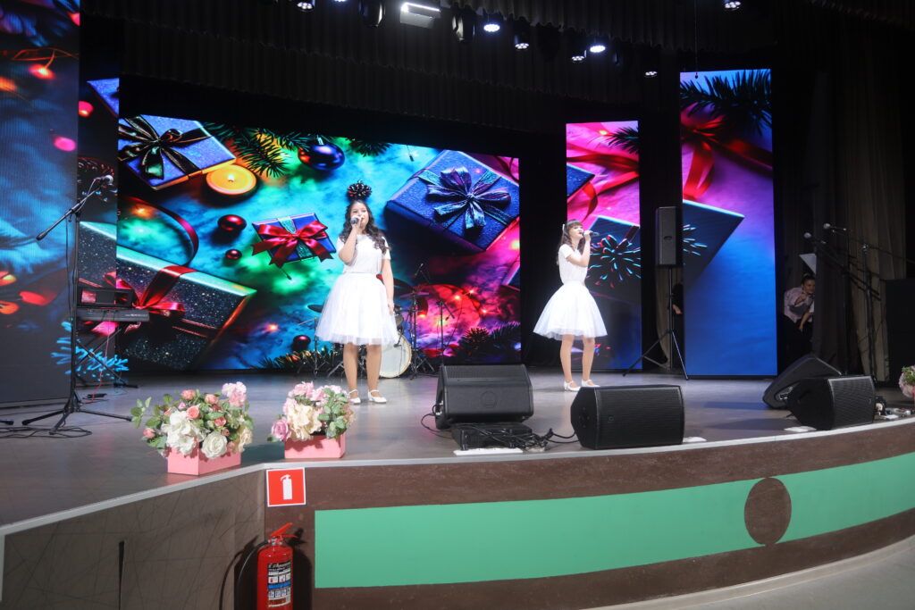 Участницы творческого тандема Сабрина Сакович и Анастасия Кресло исполнили знаменитый хит «Новогодние игрушки». Звучало задорно и весело.