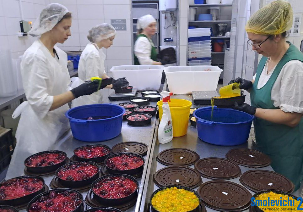 Гостям показали процесс производства знаменитых юмбриков и эклеров, знаменитых «Панды», «Ягуара» и других кондитерских изделий, и, конечно, понаблюдать за изготовлением пирогов с ягодами.