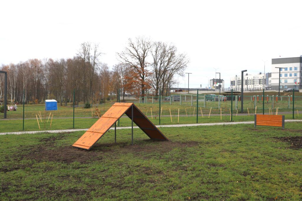 СМОЛЕВИЧИ. На новой площадке для выгула собак появились специальные тренажёры.