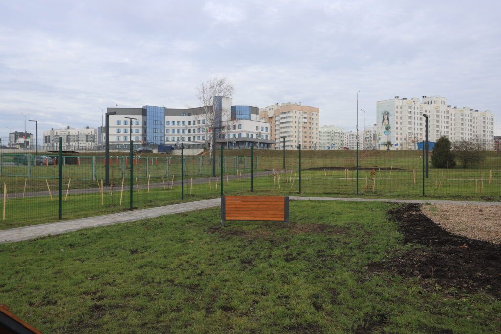 Для удобства жителей установлены лавочки и урны. Продуманы и вопросы безопасности – имеется надежное ограждение.