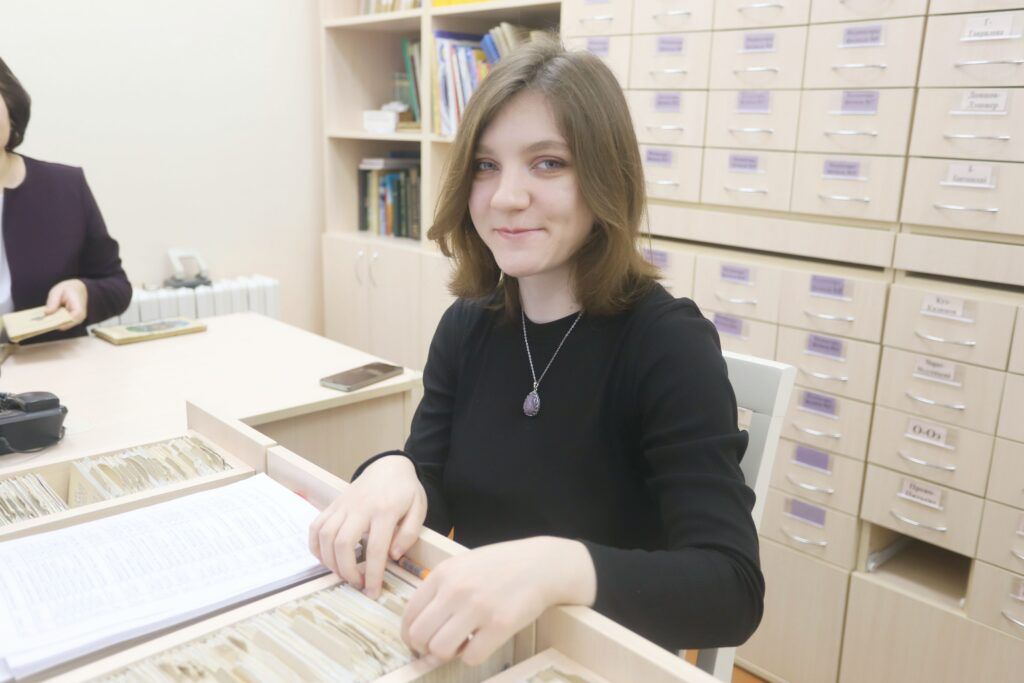 Молодой специалист отдела Елизавета Фадеева родом из Могилева. Она заносит книги в электронный каталог, работает с актами и с удовольствием участвует в библиотечном интерактиве.