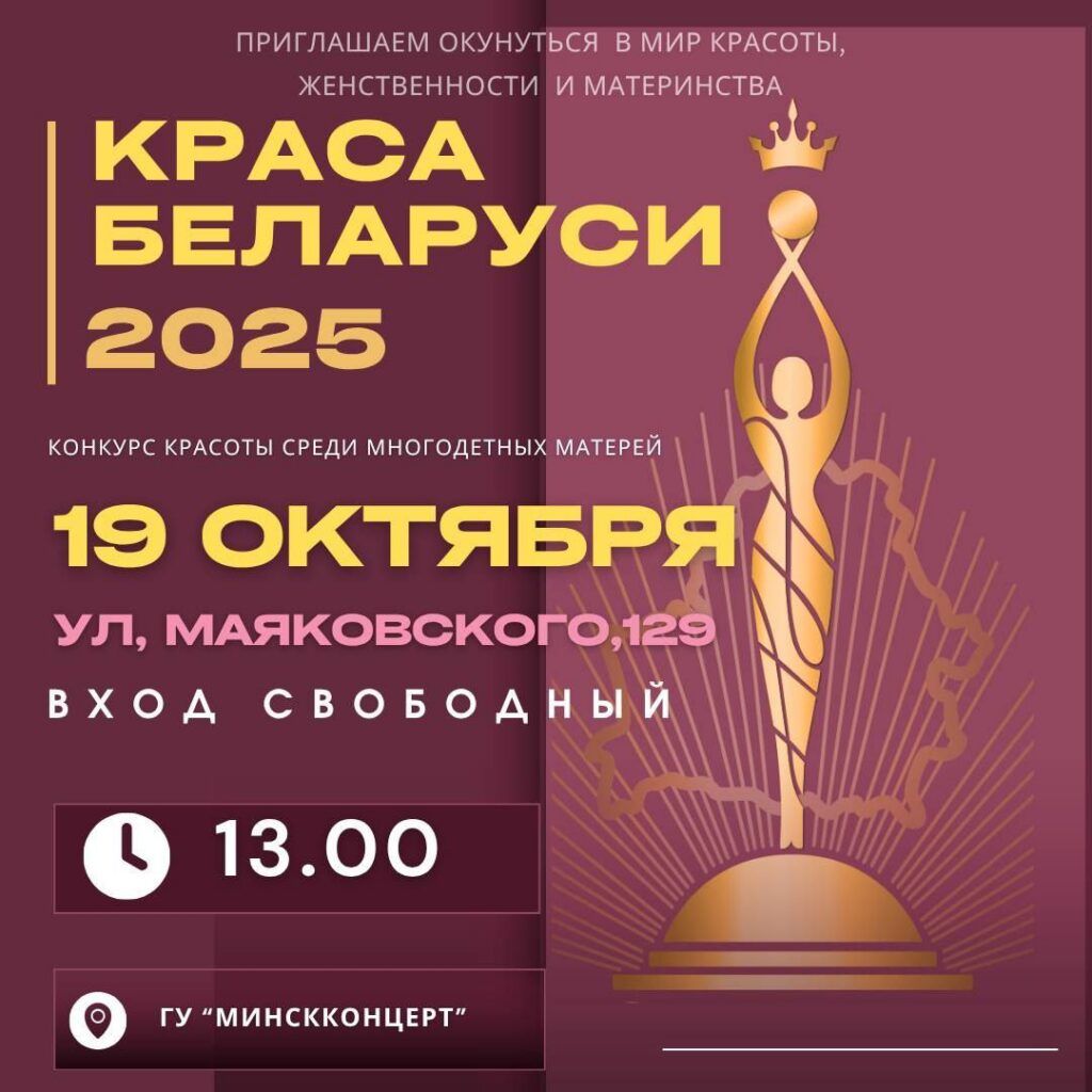 Финал «Красы Беларуси-2025» состоится 19 октября в Минске на ул. Маяковского, 129. Начало в 13.00, вход свободный.