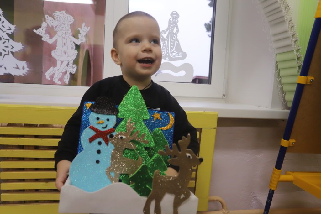 Улыбчивый Рома Ежов о желаниях молчит – вдруг не сбудутся. Но с удовольствием показал новогоднюю композицию, которую помогли сделать родные.