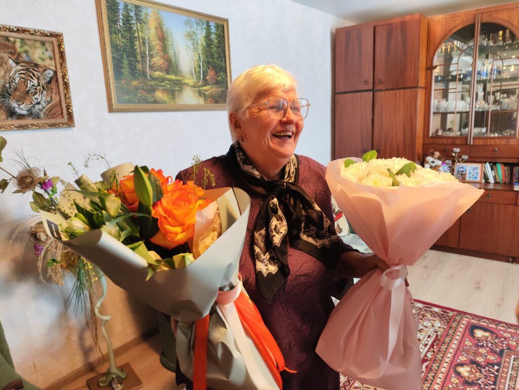 В канун 37 годовщины вывода советских войск из Афганистана, военный комиссар Юрий Шерстень, начальник управления по труду, занятости и соцзащите Илона Гриневецкая, заместитель директора территориального центра Светлана Демидюк и председатель районной организации Белорусского союза ветеранов войны в Афганистане Сергей Боровик приехали проведать и поддержать Ефросинью Филаретовну Уроднич.
