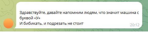 – Давайте напомним людям, что значит машина с буквой «У». И подрезать не стоит, – написал аноним нам в чат-бот.