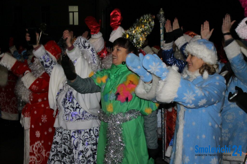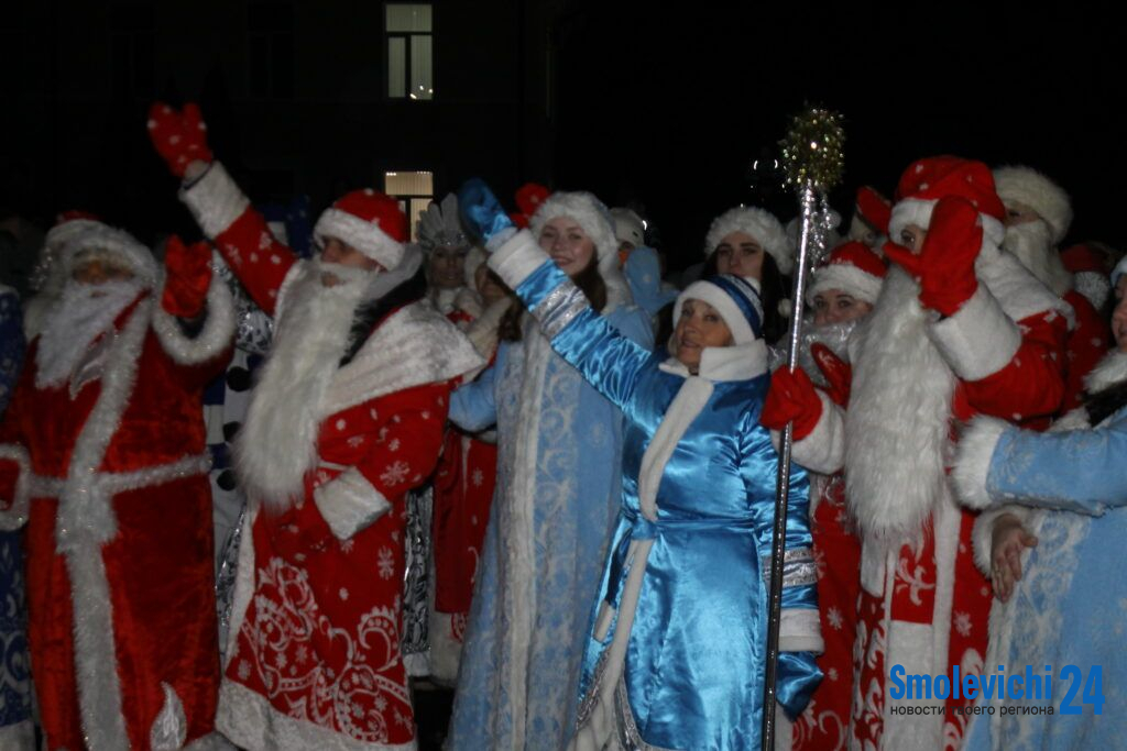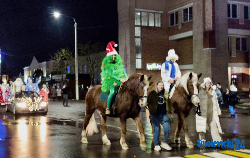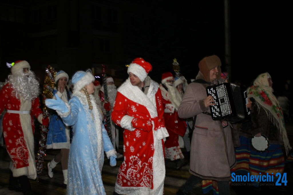 Кульминацией вечера стало красочное шествие Дедов Морозов и Снегурочек. Колонну возглавили конные всадники в костюмах Снеговика и Елки.