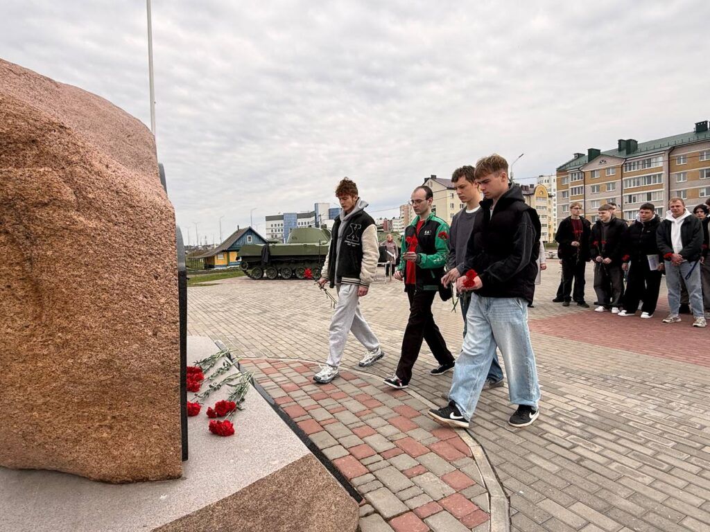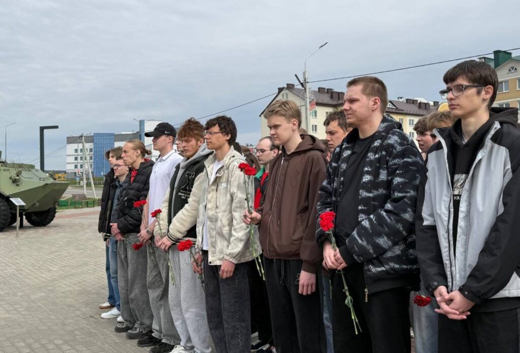 Участники возложили цветы к подножию памятного знака, символично соединив поколение победителей и новых защитников Отечества.