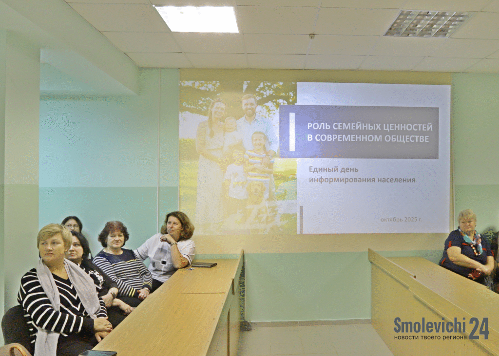 СМОЛЕВИЧИ. В Беларуси с 14 по 21 октября проходит Неделя родительской любви. Это показывает, что государство признает семью как основу общества. В этот период страна как бы говорит всему миру: мы ценим свои традиции, поддерживаем семью, материнство, отцовство и детство, и хотим жить по своим правилам. Об этом говорила заместитель председателя райисполкома Наталья Денисевич на встрече с коллективом Центра физической культуры, спорта и туризма на Едином дне информирования.