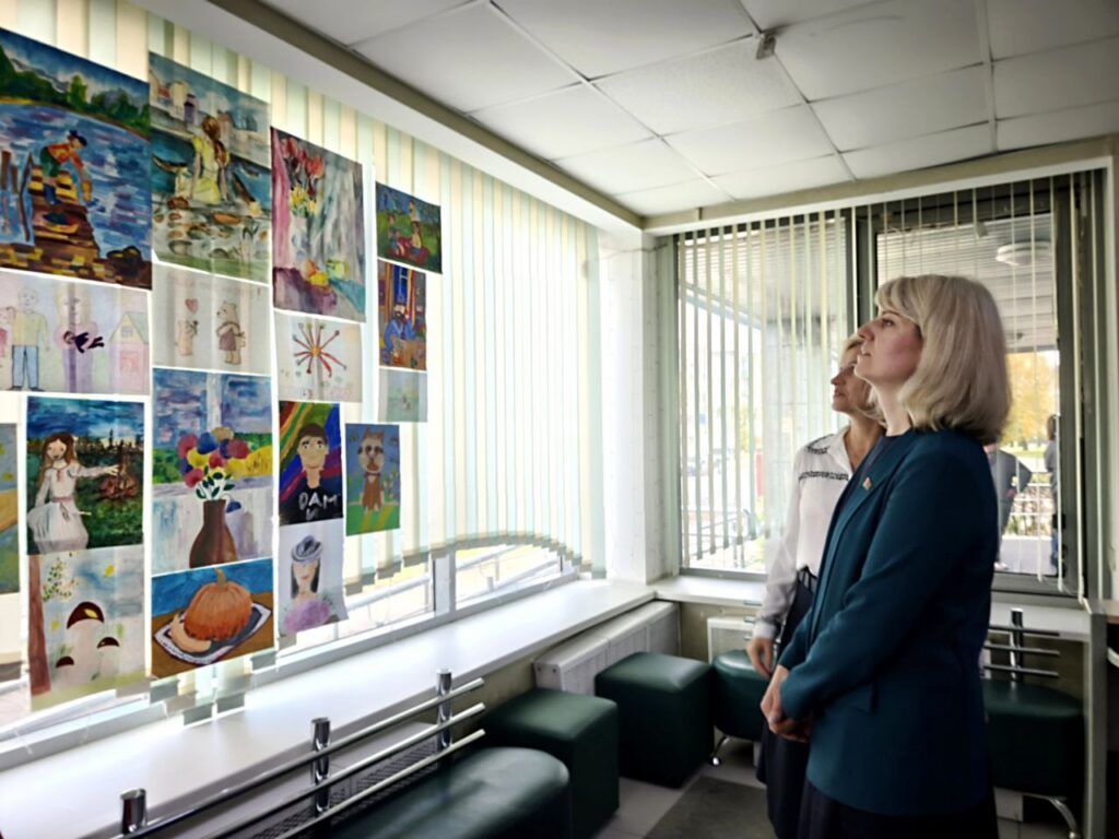 В завершение встречи заместителю председателя райисполкома Наталье Сукач показали выставку детских рисунков, подготовленную в рамках Недели родительской любви.