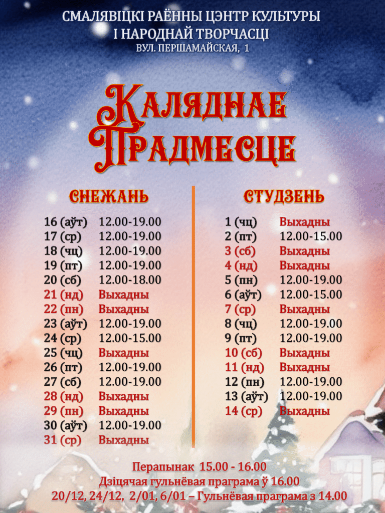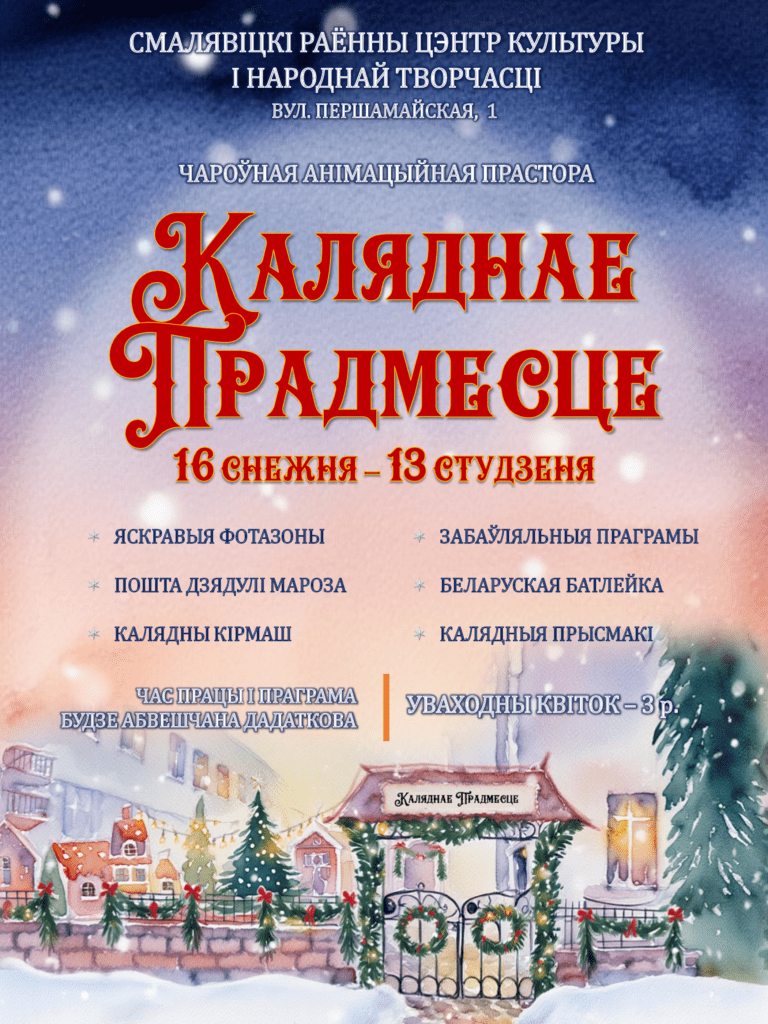 Накануне новогодних праздников в Смолевичах открылось настоящее зимнее чудо — Рождественское предместье. Это уютное пространство создано с любовью коллективом отдела идеологической работы, культуры и по делам молодежи. Энтузиасты культуры приглашают детей и взрослых окунуться в атмосферу волшебства. Локация будет работать до 13 января.