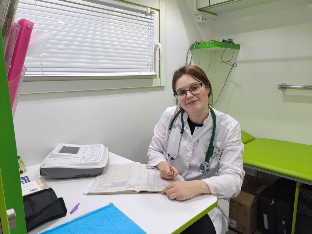 Помощник врача Анастасия Гончарова работает на передвижном ФАПе. В прошлом году она дежурила у источника в урочище Тумель, а в позапрошлом – в Петровичах.