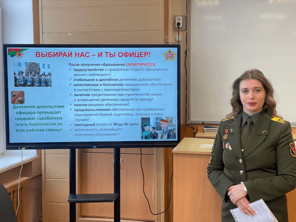 В средней школе № 2 прошла профориентационная встреча с представителями Военной академии Республики Беларусь. Мероприятие было организовано для старшеклассников, которым в ближайшее время предстоит сделать важный выбор — определиться с будущей профессией.