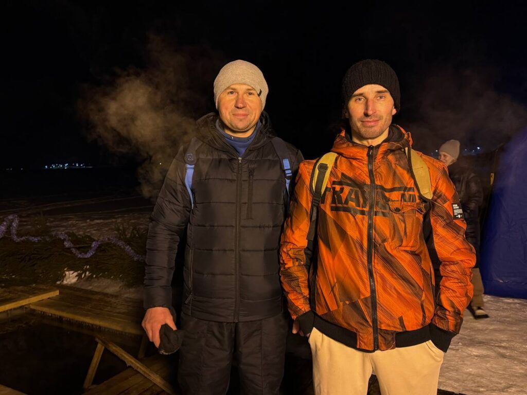 Олег Мурашко и Дмитрий Наздеркин дважды в неделю плавают в ледяной воде, поэтому в купель заходили со словами: «Давай по‑нашему».