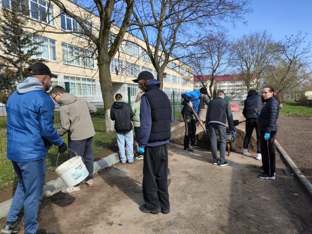 Республиканский субботник коллективы гимназии им. В.Ф. Купревича и детско-юношеской спортивной школы провели на улице 50 лет Октября, обустраивая территорию у новой автостанции.