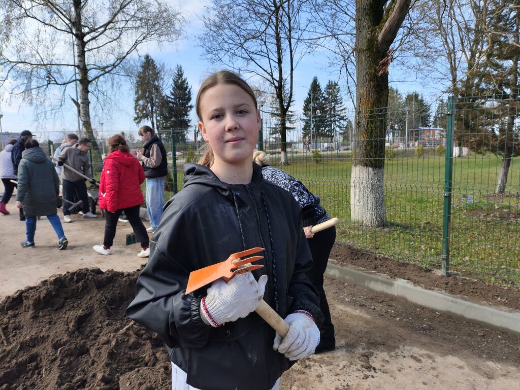 Встретили на субботнике и десятиклассницу Полину Яскевич.