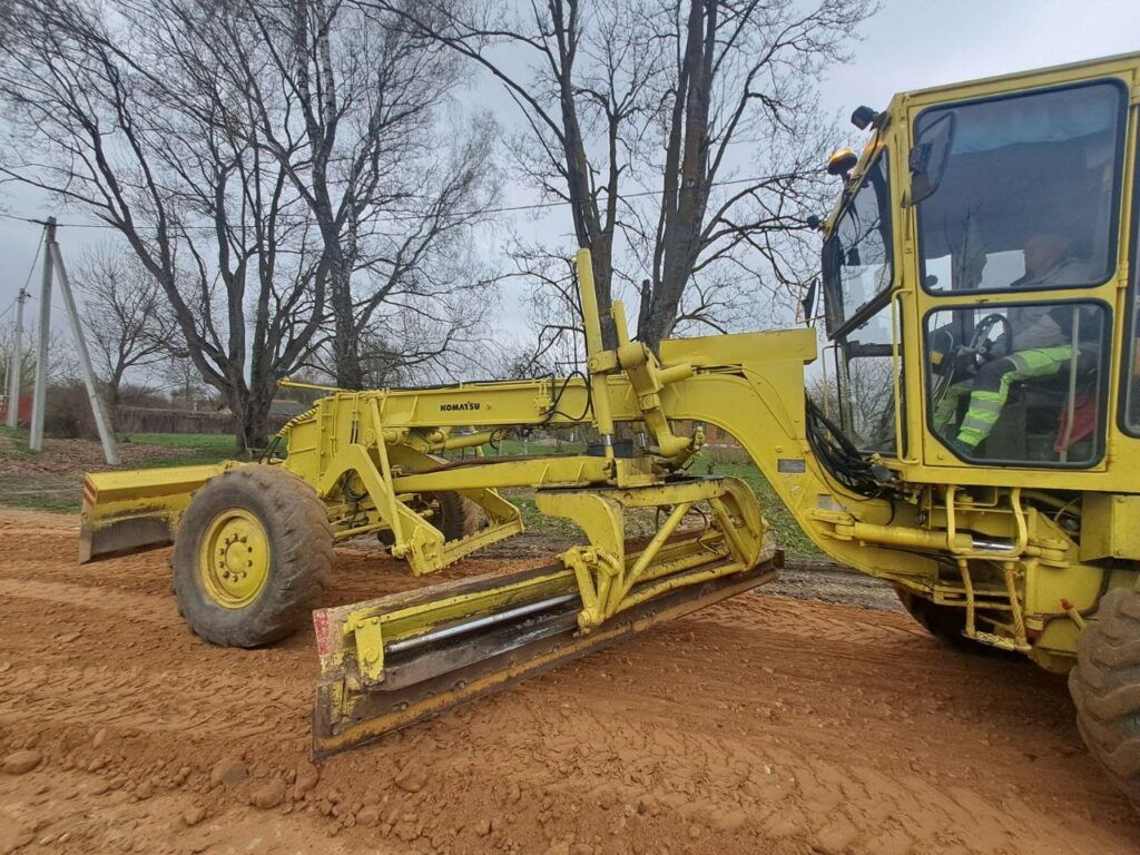 Смолевичское ЖКХ в рамках областного дорожного марафона грейдирует улицу Смирнова в деревне Студёнке. Протяженность улицы около километра.