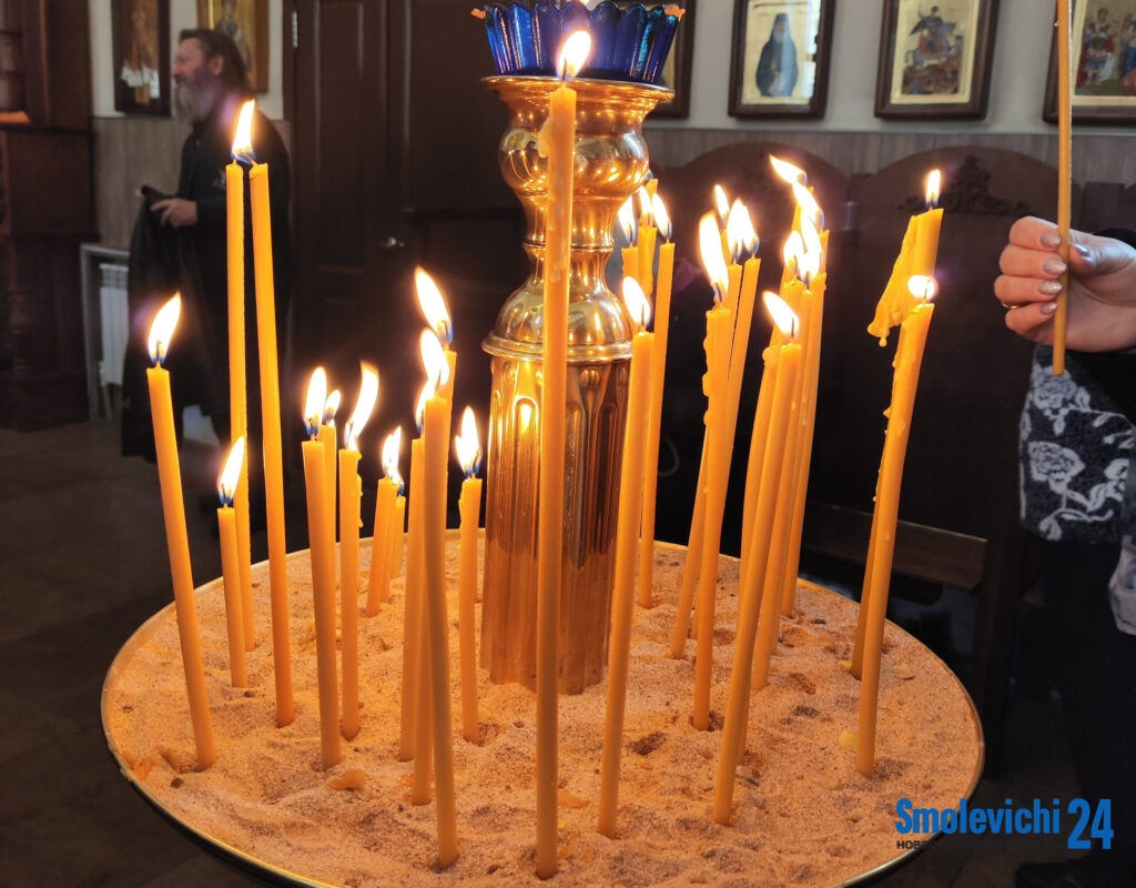 В смолевичском храме в честь Минской иконы Божией Матери в праздничный день людно. Горожане пришли на службу, принесли с собой воду или тару для нее.