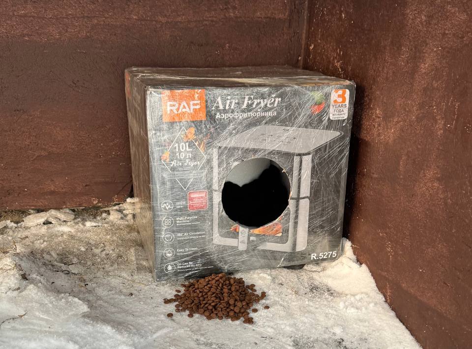 Если вы видите на улице замёрзшее животное, вы можете направить его к такому домику. А если у вас есть возможность, можно положить туда немного корма или тёплой подстилки.