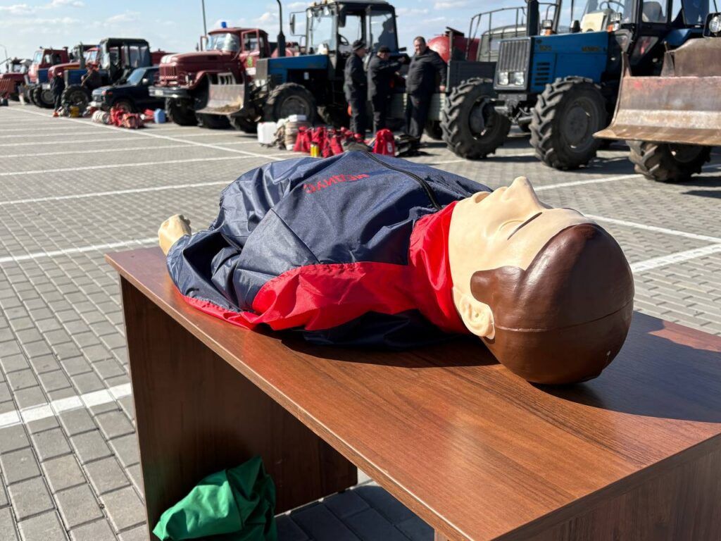 Заведующий отделением анестезиологии и реанимации Смолевичской ЦРБ Сергей Кутас напомнил работникам лесхоза, как правильно оказывать первую помощь в полевых условиях, используя манекен «Ванька».